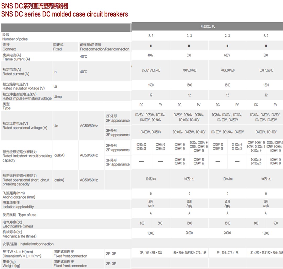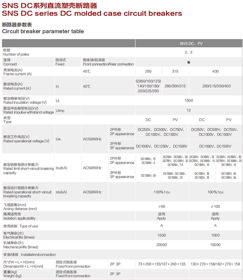 SNS DC series DC molded case circuit breakers: