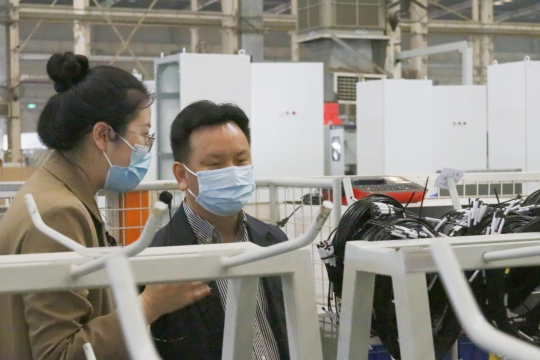 吳成貴一行了解線束預(yù)制的自動化生產(chǎn)工藝