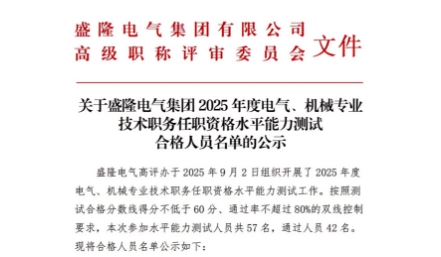 關(guān)于盛隆電氣集團2025年度電氣、機械專業(yè)技術(shù)職務(wù)任職資格水平能力測試合格人員名單的...